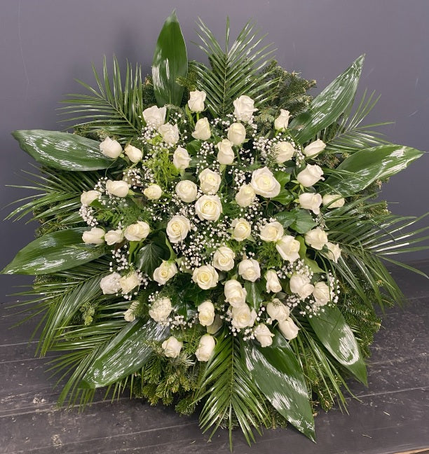Fenyőalap, rózsa, extra díszítő levelek, rezgő.
